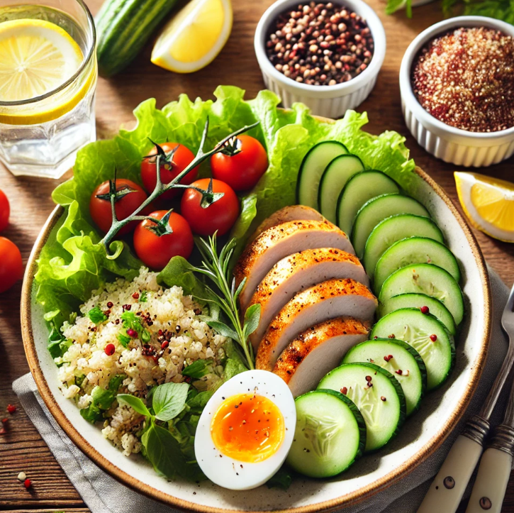 - 단백질: 닭가슴살, 생선, 두부, 달걀 등 근육을 유지하면서 지방을 태우는 단백질 포함